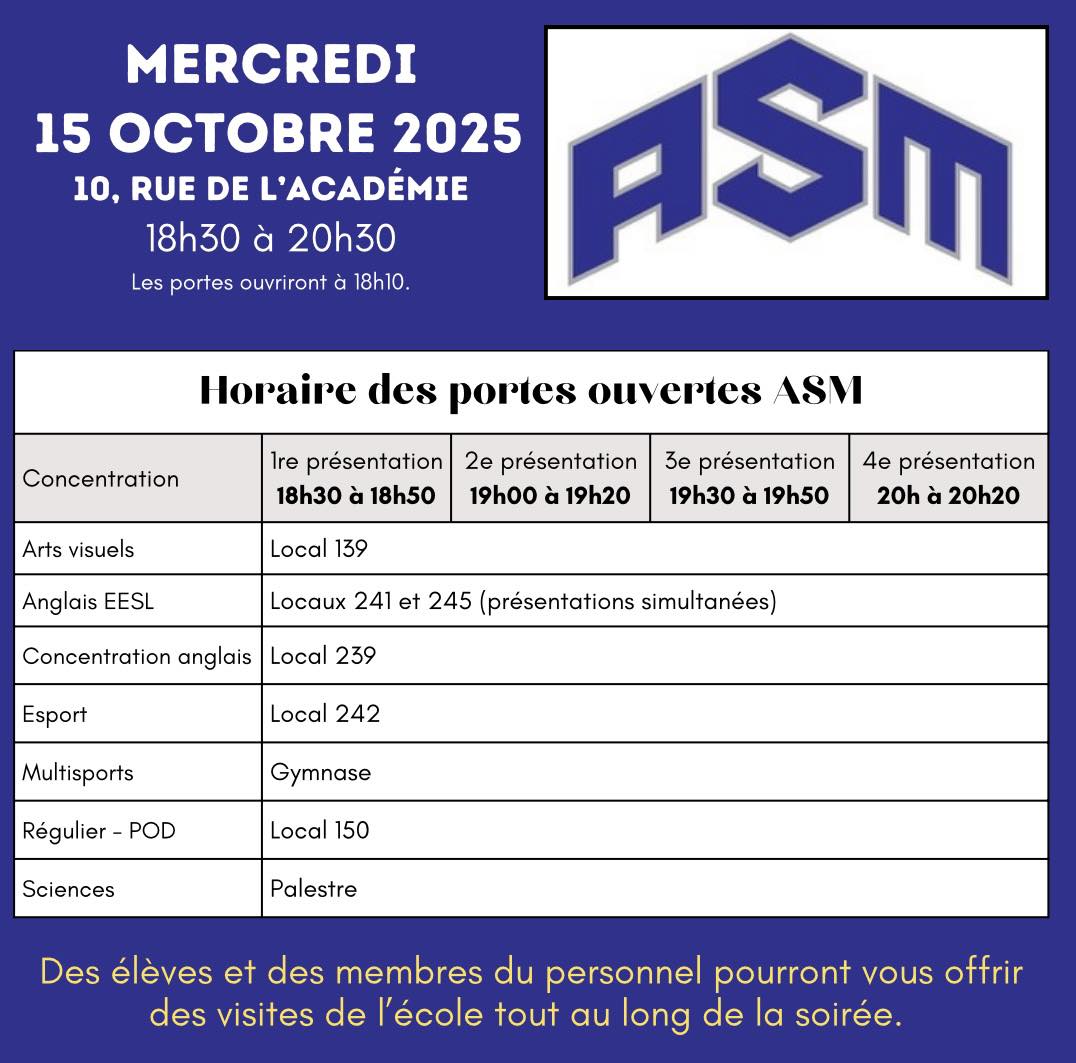 L’École Académie Sainte-Marie vous invite à découvrir ses nombreux programmes! L'horaire détaillé de la soirée est maintenant disponible!